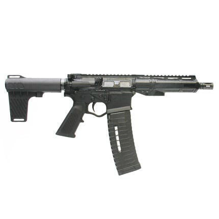 ATI ATIGAX5567ML60: Introducing the ATI Alpha Maxx Semi-Automatic AR-15 Pistol, a powerful and versatile firearm engineered for performance and reliability. Featuring a 7.5" barrel and ATI's new patent pending handguard with forward M-Lok slots and full Pic rail this pistol offers exceptional accuracy, adaptability and value. The metal-reinforced polymer receiver ensures durability and lightweight handling, making it ideal for various applications. Chambered in 5.56 Nato this pistol will safely feed and function with both 5.56 Nato and .223 Remington ammunition. This particular SKU ships complete with 1-30 and 1-60 Round Magazine and a Set of Flip Up Sights as seen in the images. These upgraded accessories add tremendous extra value to this package. - More about the pistol - The Alpha Maxx lower features a patented hammer and trigger pin retainment system, preventing movement from the hammer and trigger pin during firing. The Alpha Maxx also features ATI's patented over-molded metal insert, which reinforces the buffer tube housing and rear takedown pin. This allows for metal-on-metal contact with both the buffer tube as well as the rear takedown pin thus increasing strength and durability from recoil and consistent firing. This particular model comes in a popular all black finish and features a 30 and 60 round magazine, a set of flip up sights, and a manually adjustable Blade Style Brace installed. The standard 30 round mag allows you to keep the weight down to a minimum and the 60 round mag option provides tons of fire power without reloading if you need it. The 60 round magazines alone typically retail for $40.00. What a great value and an awesome package deal.