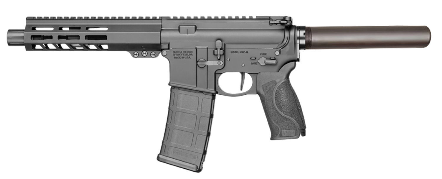 7.75" M&P free-float handguard with M-LOK slots. Fixed arm brace with closure strap. Full length Picatinny-style rail. One-point QD sling swivel attachment point in arm brace. Flat face trigger. M&P grip with (4) Interchangeable palmswell grip inserts. Chromed firing pin. Forged, integral trigger guard. Forward assist button. Threaded barrel with blast diverter.